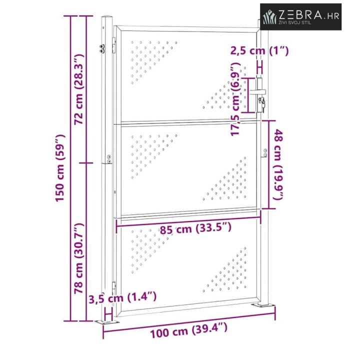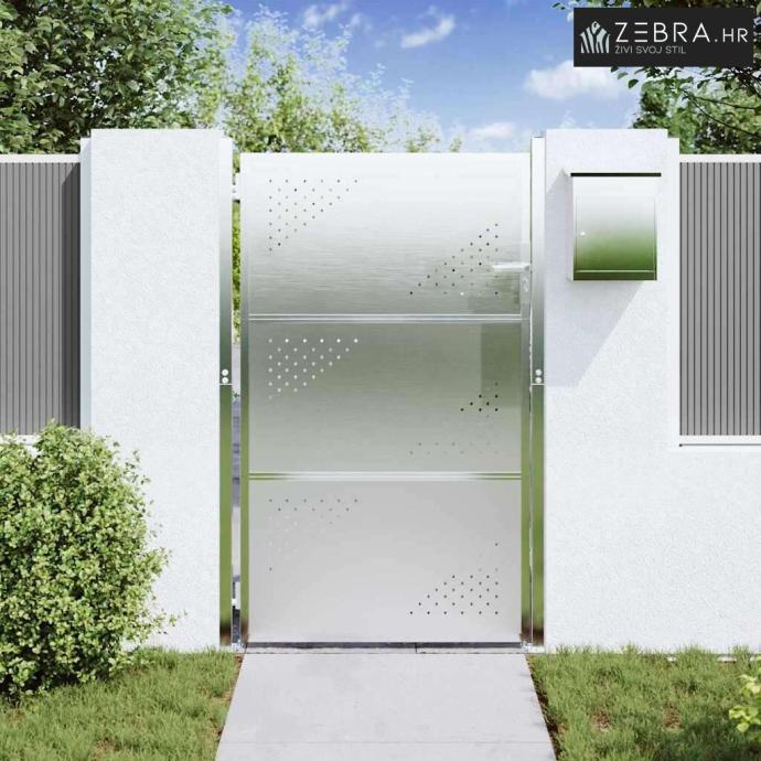 Izrada od nehrđajućeg čelika: Ova vrata su napravljena od najkvalitetnijeg nehrđajućeg čelika, poznatog po svojoj izdržljivosti. Ovaj materijal ne samo da osigurava otpornost na vremenske uvjete, nego i dodaje elegantan srebrni izgled, jamčeći dugotrajnu funkcionalnost.