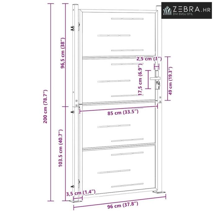 Izrada od nehrđajućeg čelika: Ova vrata su napravljena od kvalitetnog nehrđajućeg čelika, što znači da su dugotrajna i jako otporna. Njihov sjajni završetak doprinosi modernom izgledu vašeg vrta.