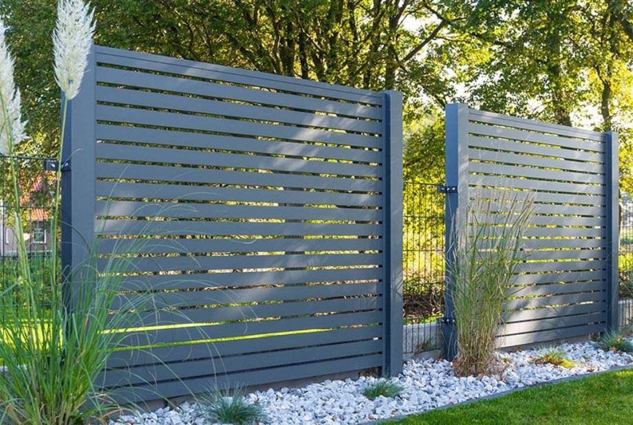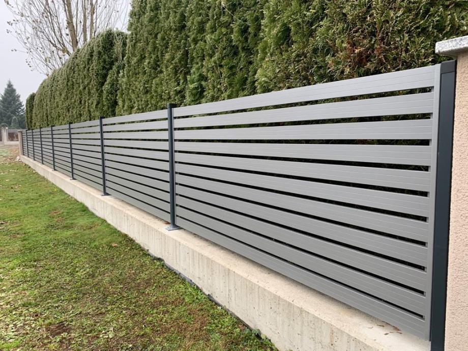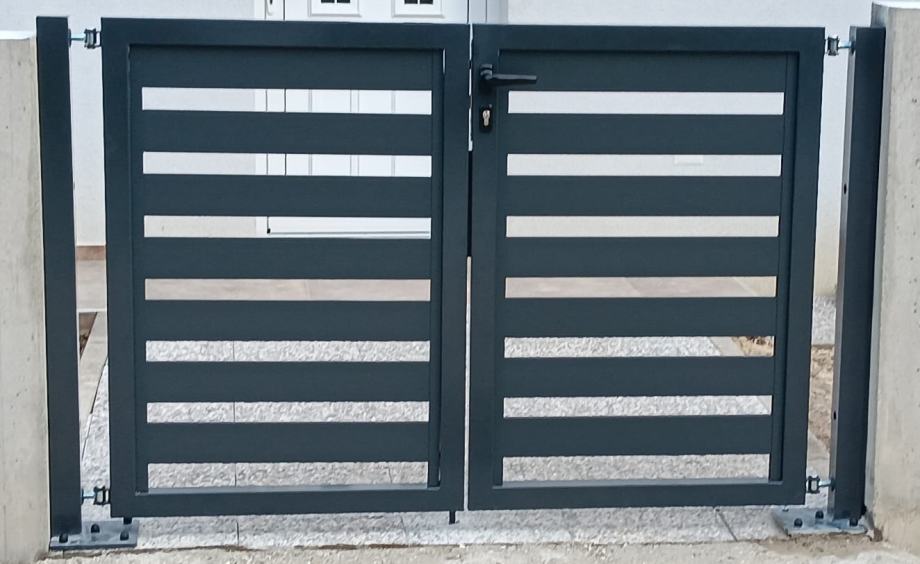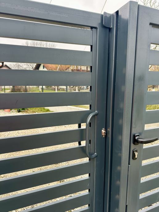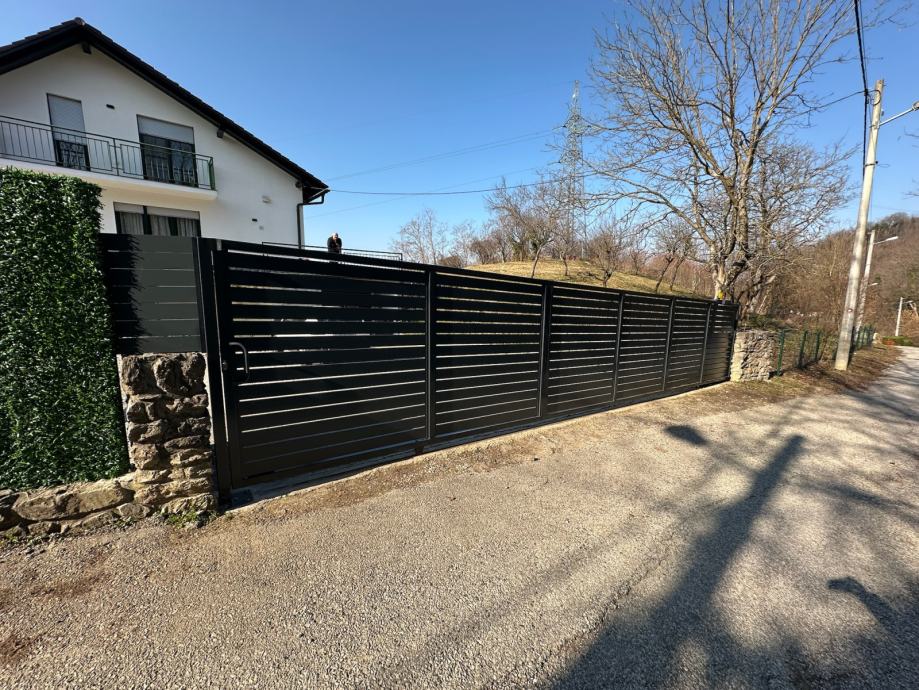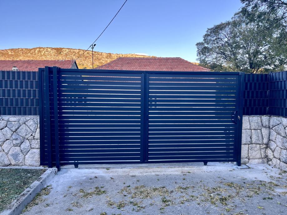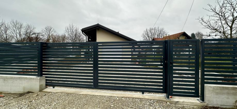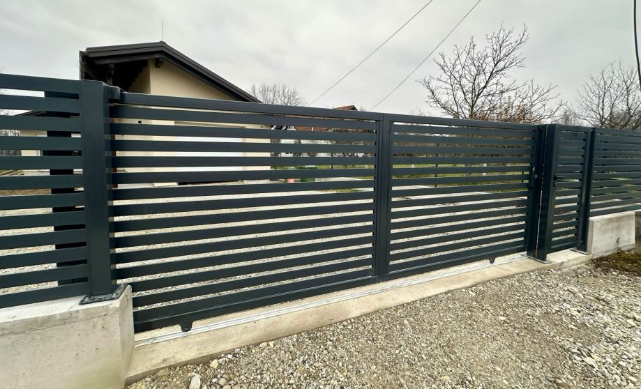 Koristimo aluminijske stupove 75x75mm ili 100x100mm, kao i horizonatle letve 100x2mm, 80x2mm ili 160x20 po željama kupaca s većim ili manjim razmakom između letvi, kao i bez mogućnosti pogleda izvana. Vrata smo u mogućnosti napraviti pješačka, dvokrilna, klizna ili samonosna (bez tračnice). Koristimo isključivo provjerene aluminijske profile, a vrata su od željeznog okvira, s aluminijskim letvama, provjerene tvornice koja već više od 10 godina koristimo u našim projektima.