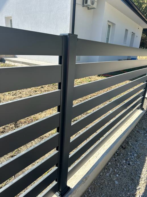 Moderna aluminijska ograda s vodoravnim letvama - savršen spoj elegancije i funkcionalnosti za vaš dom! Naše ograde donose minimalistički dizajn koji se uklapa u svaki prostor. Izdržljive, otporne na vremenske uvjete i jednostavne za održavanje. Dostupne u ANTRACIT boji, mogućnost i drugih boja.