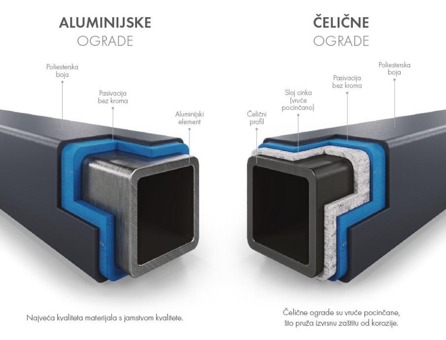 U ponudi imamo aluminijske i čelične dvorišne ograde po mjeri: