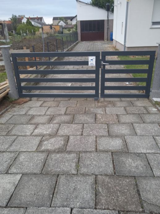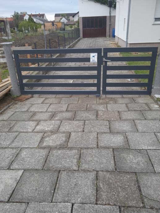 prodajem kapiju od aluminijskih profila vidljivo na fotografijama kapija iz dva dijela (krila) veće krilo dimenzije 200 cm visina 110 cm malo krilo 110x110 cm sa novim okovima i bravom cilindar ključ cijena za komplet 450,00 eura upitat na mail