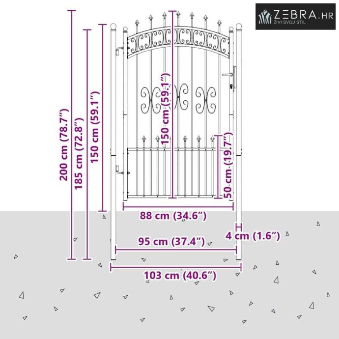 https://zebra.hr/shop/cijena/kapija-s-vrhom-u-obliku-koplja-siva-103-x-150-cm-celik