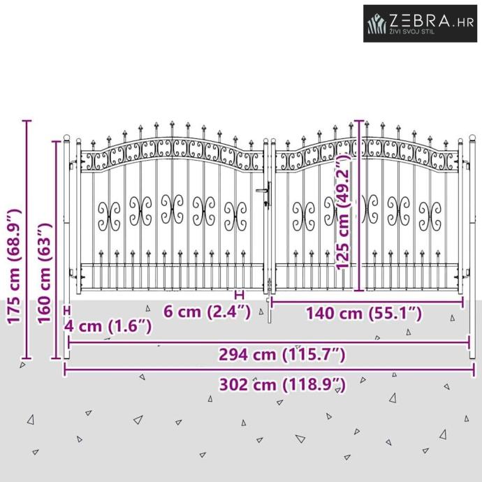 https://zebra.hr/shop/cijena/kapija-s-vrhom-u-obliku-koplja-siva-305-x-125-cm-celik