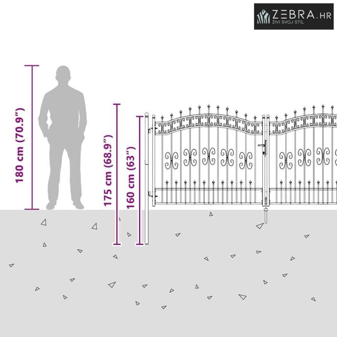 Tradicionalni izgled: Njihov stil dodatno naglašava srebrna obrada, s raskošnim detaljima koji se lijepo uklapaju s klasičnim vrtovima. Ova vrata donose šarm starog svijeta, idealna za prostore koji traže dašak elegancije.