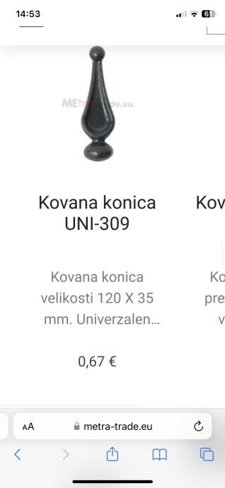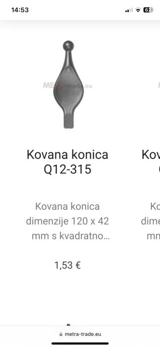 prodajem šiljke za kovanu ogradu, imam 1350komada desnil i 650 komada lijevih, cijena bi bila za komplet, može se kupiti i manja količina. Za više informacija ako može na mail miha694@gmail.com ili mobilni broj 031 432 084 može i viber/ whatsapp ( nalazim se u Sloveniji, blizu Zagreba)