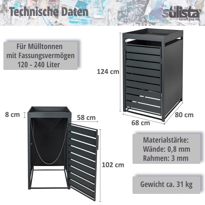 Informacije o proizvodu "STILISTA obloga kante za smeće od metala sa biljnim krovom, svaka 240 litara, antracit, 1 vrata"