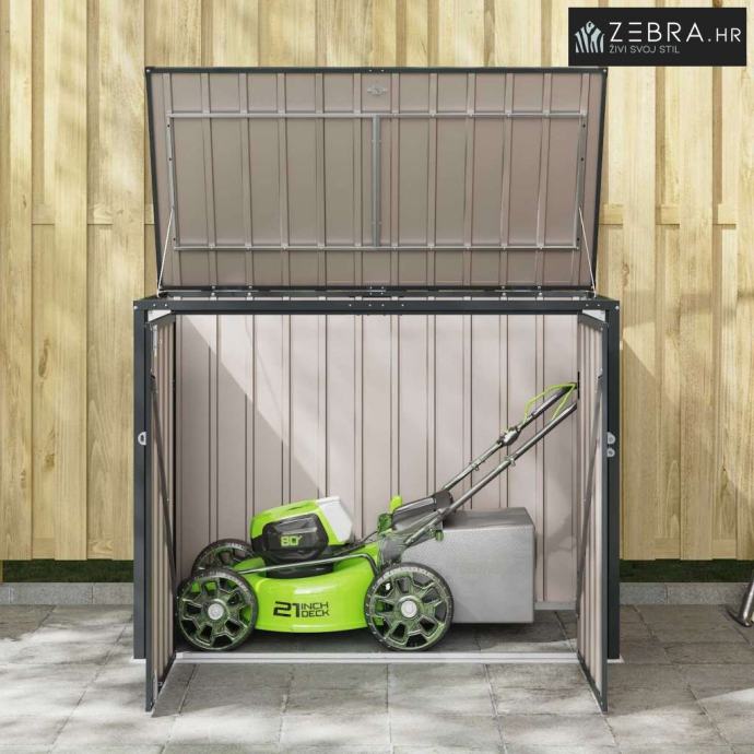 Ova zatvorena kutija za skladištenje u vrtu nudi odlično rješenje za vanjska skladišta, uklapa se u modernu jednostavnost i funkcionalnost. Dizajnirana za proljeće, naglašava čiste linije i minimalizam, privlači one koji traže elegantan i praktičan dodatak. Kutija izrađena od čelika pruža sigurnu pohranu vrtnih alata ili opreme, a savršeno se uklapa u razne stilove vrtova. Ova kutija jamči da su vaši predmeti zaštićeni od vremena i krađe.