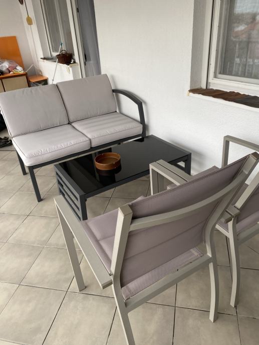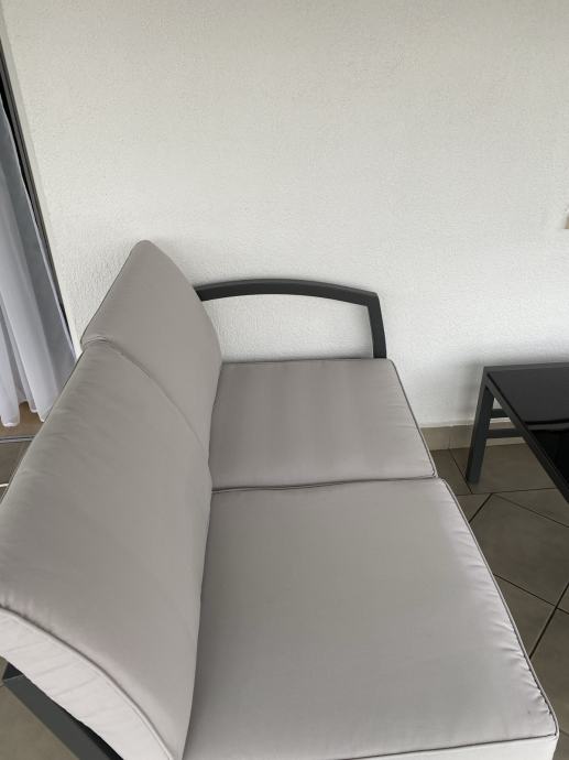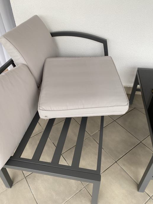 dubina sjedalice 65 cm, četiri siva jastuka sa zatvaracima, mogucnost pranja gornje navlake.