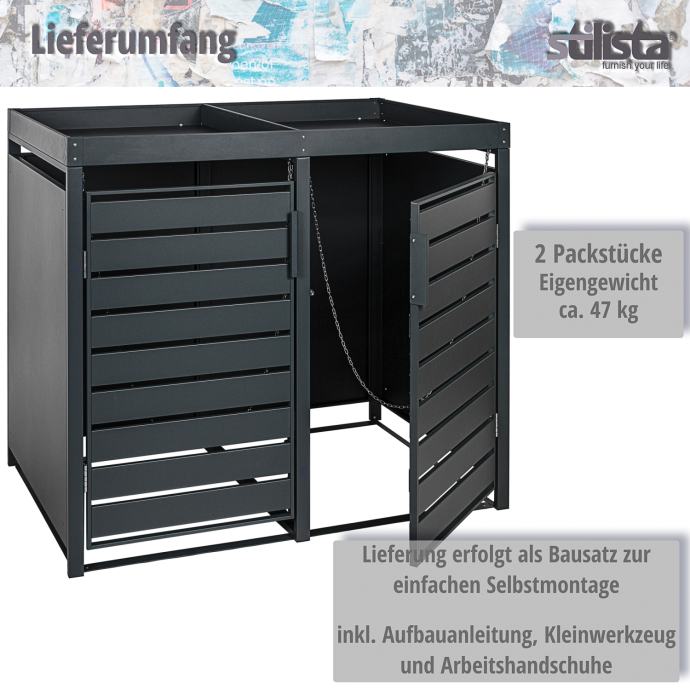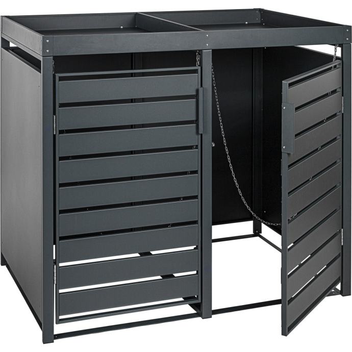 Podaci o proizvodu "STILISTA metalna obloga za kante za smeće sa biljnim krovom, 240 litara, antracit, 2 vrata"