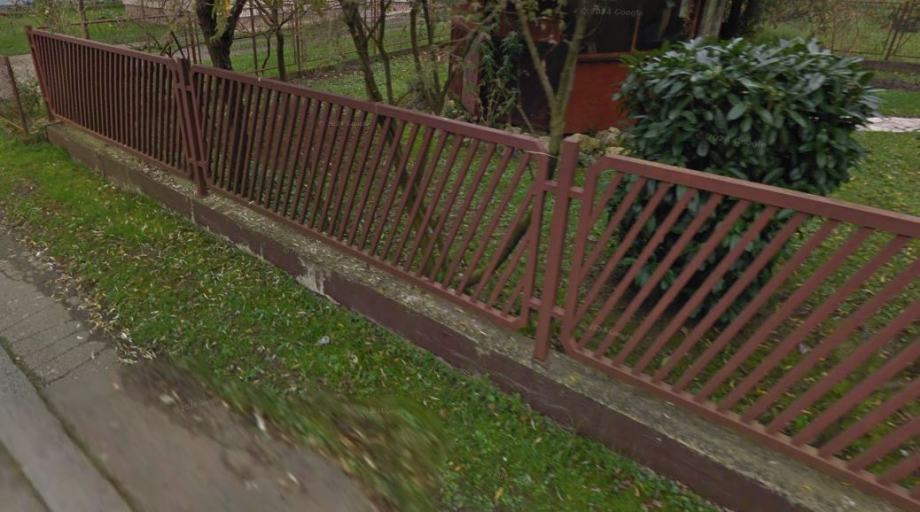 Metalna ograda, masivna, 5 polja, klizna vrata i mala vrata, ukupne dužine 28 m,
