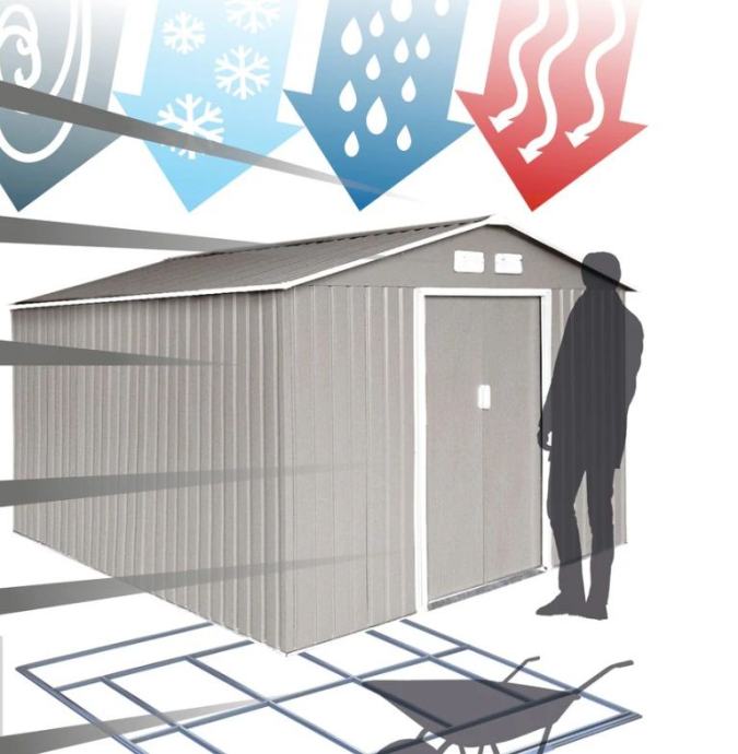Metalna vrtna kućica - šupa za alat S300 XXXL SIVA - 8,8 m²