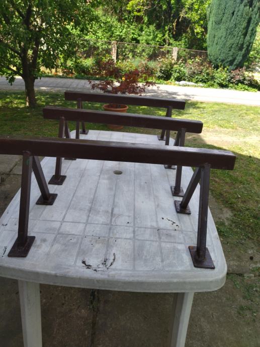 Nogare su izrađene od željeznih profila 5x5 cm i 3x2 cm. Mogu poslužiti za izradu postolja.