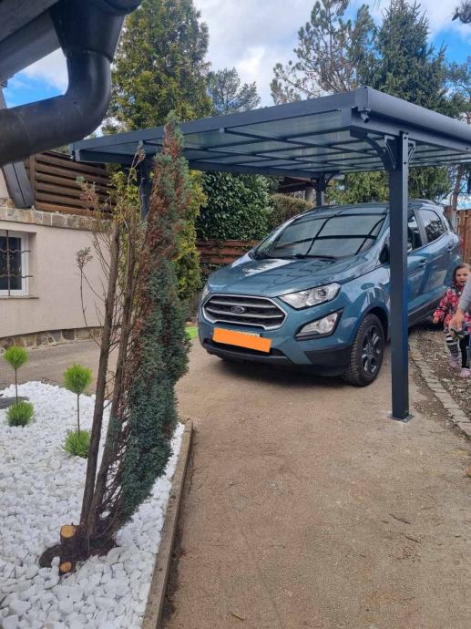 Nadstrešnica je potpuno bez održavanja, ne trune i ne hrđa. Sa krovom od čvrstih polikarbonatnih ploča (7 kom, 8mm debljine).
