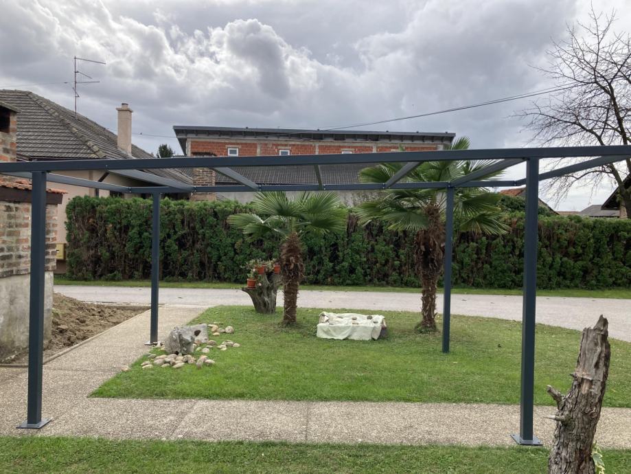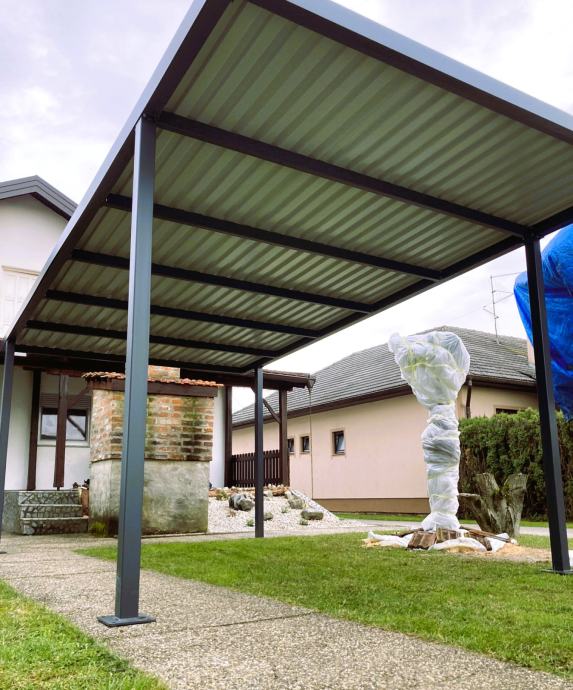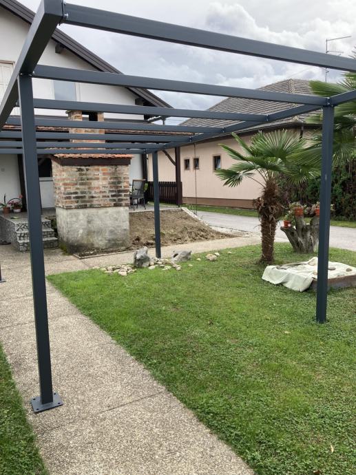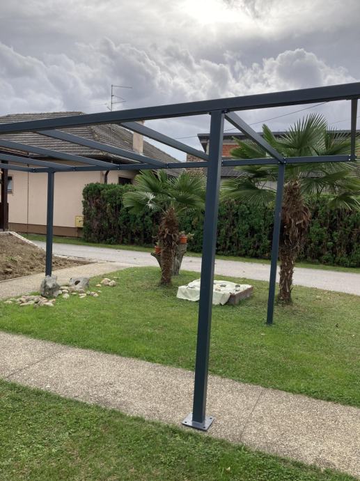Prodaje se nadstresnica bez pokrova za auto 3x5.5m vrlo lako se montira sve montazno antracit boja te predvidena za limeni pokrov ili panel! !vise info na broj