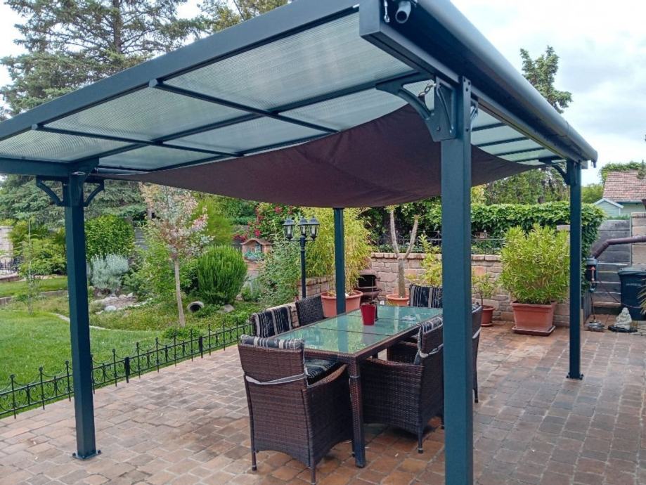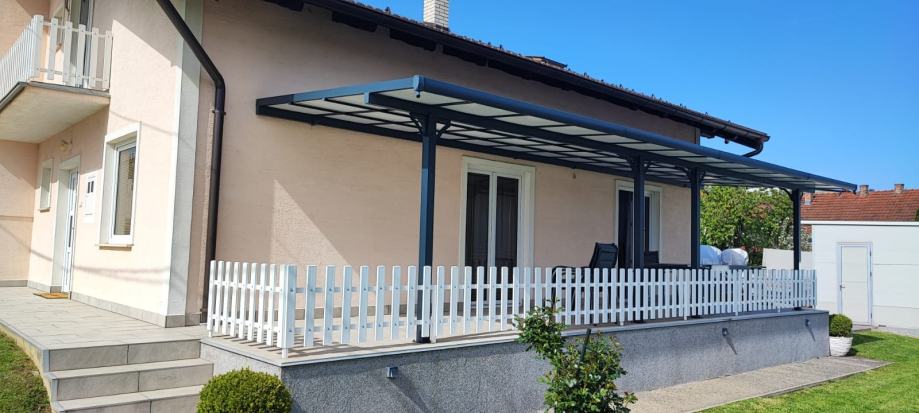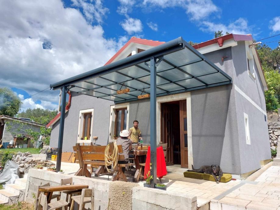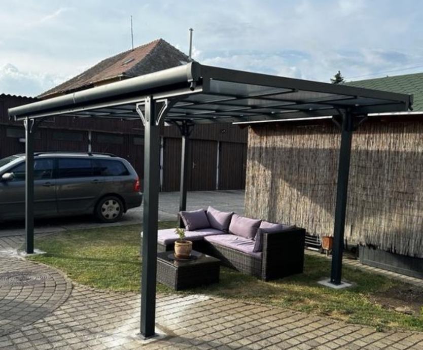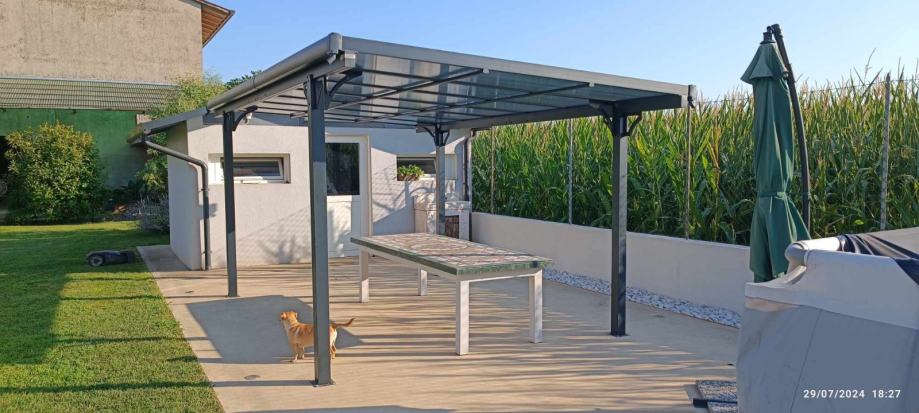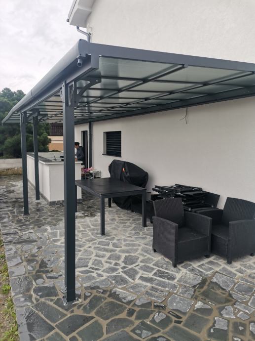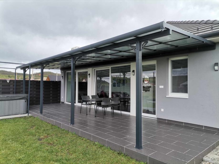Nadstrešnica je potpuno bez održavanja, ne trune i ne hrđa. Sa krovom od čvrstih polikarbonatnih ploča/pleksiglas (7 kom, 8mm debljine).