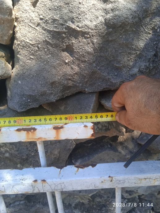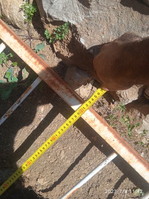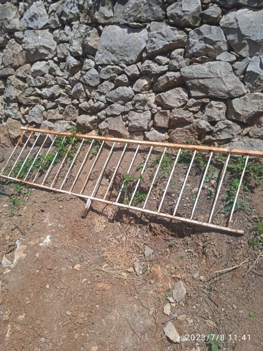 visina ograde je 60cm plus noga na kojoj stoji..dužina ograde je 5.5 metara.grada nije gnjila ali ju je potrebno piturat..sve na slikama vidljivo.