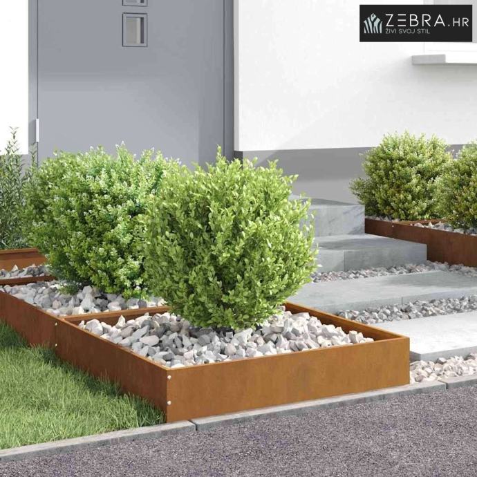 Ova čelična ogradica za travu moderno je rješenje za odvajanje vaših vrtnih ili terasnih područja s čistim, funkcionalnim izgledom. Njena jednostavna kvadratna forma pogodna je za razne dizajne krajolika, bilo ravne ili zakrivljene.