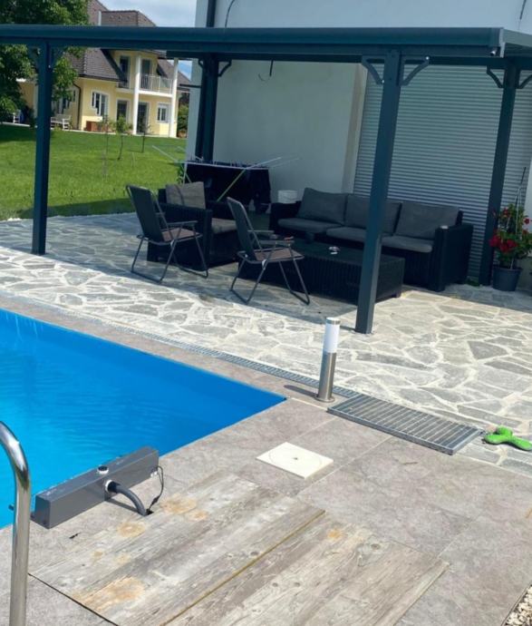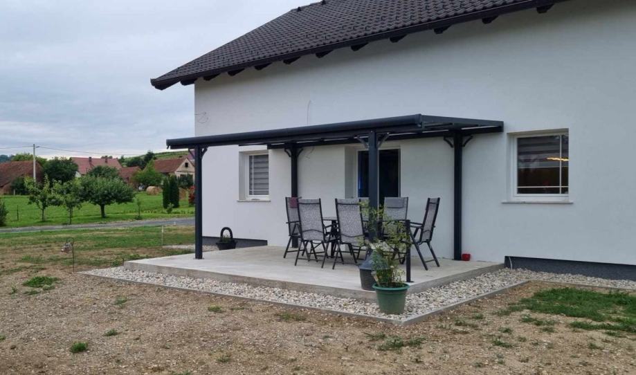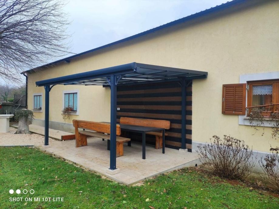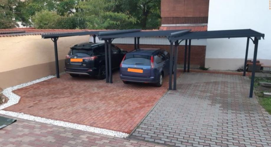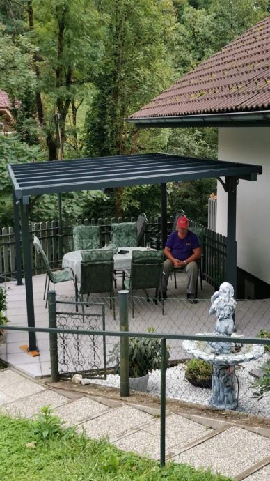 Nadstrešnica je potpuno bez održavanja, ne trune i ne hrđa. Sa krovom od čvrstih polikarbonatnih ploča (7 kom, 8mm debljine).