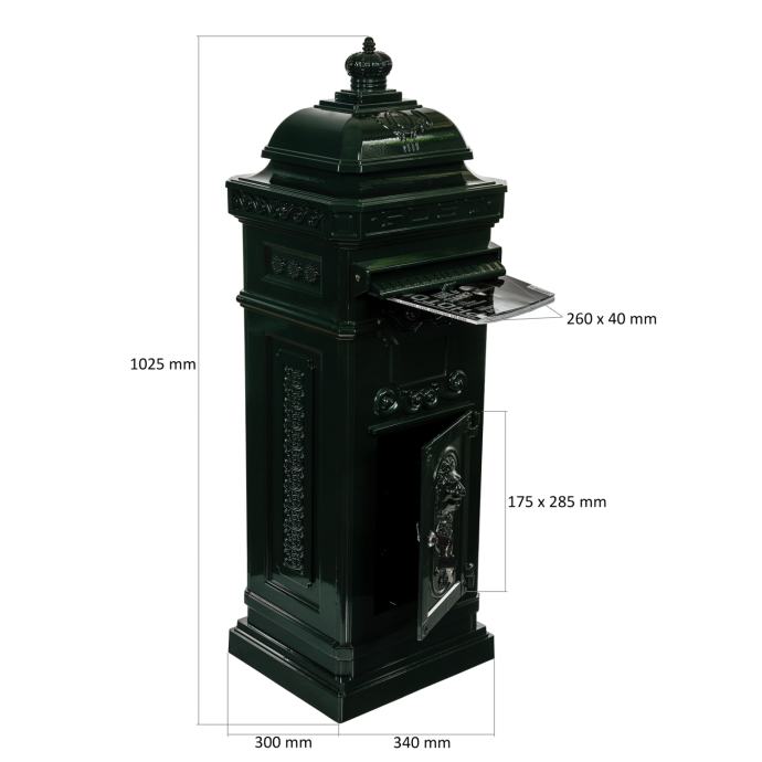 Elegantan poštanski sandučić na stupu u starinskom stilu s detaljnim ukrasima