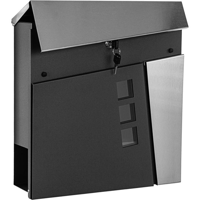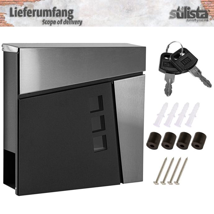 Naš STILISTA zidni poštanski sandučić 37 x 37 x 10 cm od čelika obloženog prahom dostupan je u šest različitih modela i po dvije boje. Poštanski sandučić ima veliki otvor za pisma dimenzija 33,5 x 3,5 cm i stoga je pogodan i za velika pisma i deblje koverte. Također nudi zasebnu rolu novina dimenzija 36,5 x 8 x 9 cm. Zahvaljujući bravi i ključu uključenim u isporuku, vaša pisma i razglednice su sigurno pohranjeni.