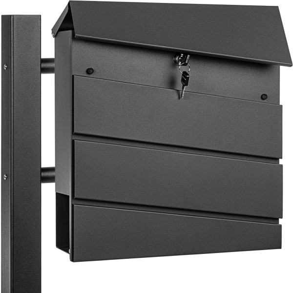 Naš STILISTA samostojeći poštanski sandučić ima postolje s nogom od čelika obloženog prahom. Poštanski sandučić dostupan je u šest različitih modela u dvije boje. Poštanski sandučić ima veliki otvor za pisma dimenzija 33,5 x 3,5 cm i stoga je pogodan i za velika pisma i deblje koverte. Također nudi zasebnu rolu novina dimenzija 36,5 x 8 x 9 cm. Zahvaljujući bravi i ključu uključenim u isporuku, vaša pisma i razglednice su sigurno pohranjeni.