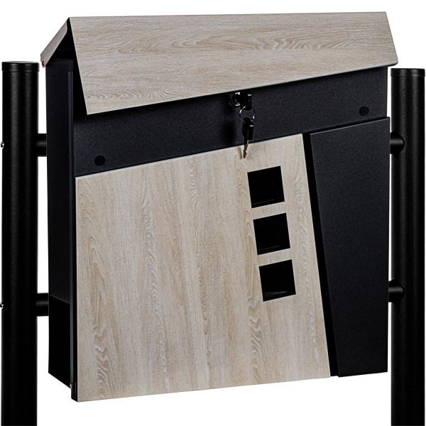 Stojeći poštanski sandučić STILISTA u modernom dizajnu s izgledom drva izrađen od metala obloženog prahom nudi obilje prostora za pohranu vaših pisama i razglednica