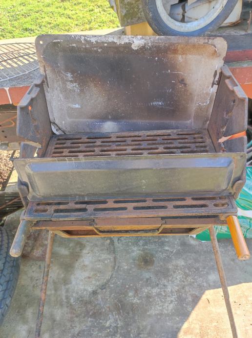 Prodajem roštilj MIO Standard,Osjek Radi se o gusnatom masivnom roštilju dim. 50x35cm sa gusnatom resetkom 29x35cmNoge su sklopive, što olakšava transport i skladištenje.dolazi sa limovima protiv vjetra. Resetka inox dim69x45 je 10e