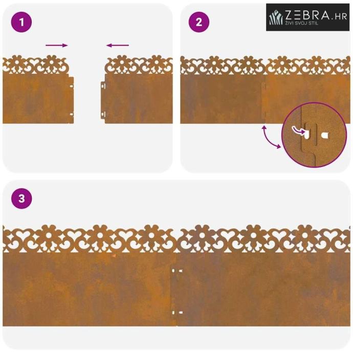 Ovaj elegantni metalni rub za travnjake donosi stylish rješenje za definiranje gredica i staza, savršeno se uklapajući u tradicionalne i moderne krajolike. S elegantnim linijama i minimalističkim stilom, poboljšava izgled vrtova i terasa. Uredi svoj vanjski prostor i dodaj arhitektonski element svom vrtu. Prilagođen onima koji vole jednostavnu estetiku, ovaj rub kombinira vizualnu privlačnost s praktičnošću, stvarajući ugodan ambijent.