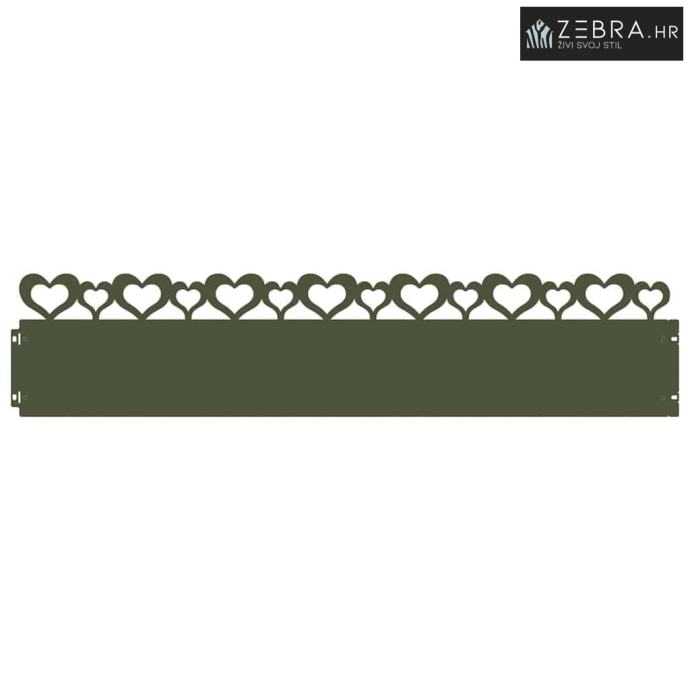 Izdržljivi materijali Ovi rubovi za travnjake su napravljeni od robusnog metala i otporni su na izazove vanjskih uvjeta. Njihova metalna konstrukcija jamči dugotrajnost, osiguravajući da vaši rubovi budu čvrsti kao i vaša posvećenost održavanju. Otporniji su na vremenske promjene i traju dugo, bilo da je ljeto ili vjetrovito proljeće. Moderni stil Ovaj rub pokazuje ukus za čistu i suptilnu eleganciju, s jednostavnim linijama i bez ukrasnih detalja. Njegova minimalistička privlačnost lako se uklapa u suvremenu vrtu, namještaj i arhitekturu, čineći ga fleksibilnim izborom za razne pejzaže. Praktična funkcionalnost Dizajniran da se neprimjetno uklopi u vrt, ovaj rub jasno razdvaja travnjake od cvjetnih gredica ili staza. Njegove elegantne granice pomažu zadržati travu pod kontrolom i održavaju uredan izgled vrta. Ova jasna podjela olakšava održavanje, uklanjajući stres kod uređivanja vrta. Jednostavna instalacija Prilikom postavljanja bit će potrebno dvoje ljudi i odvijač. Ova praktičnost omogućuje vlasnicima kuća da postignu profesionalne rezultate bez stručne pomoći, dajući im kontrolu nad granicama vrta na jednostavan način. Upute za njegu Održavanje rubova je jednostavno; samo obrišite vlažnom krpom. Tako ćete lako ukloniti prljavštinu ili smeće. Ova lakoća održavanja osigurava da vaši rubovi ostanu u besprijekornom stanju iz godine u godinu, omogućujući vam da se više fokusirate na njegu biljaka. Boja: Maslinasto zelena