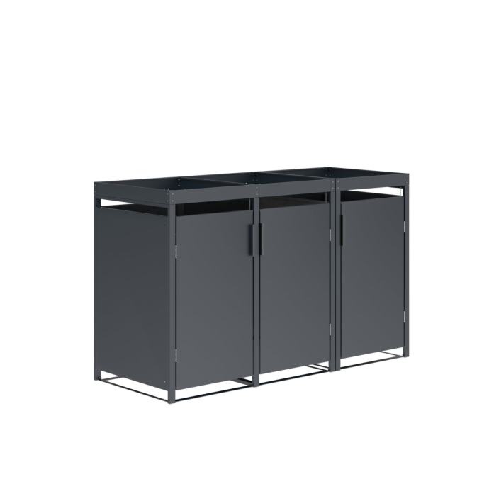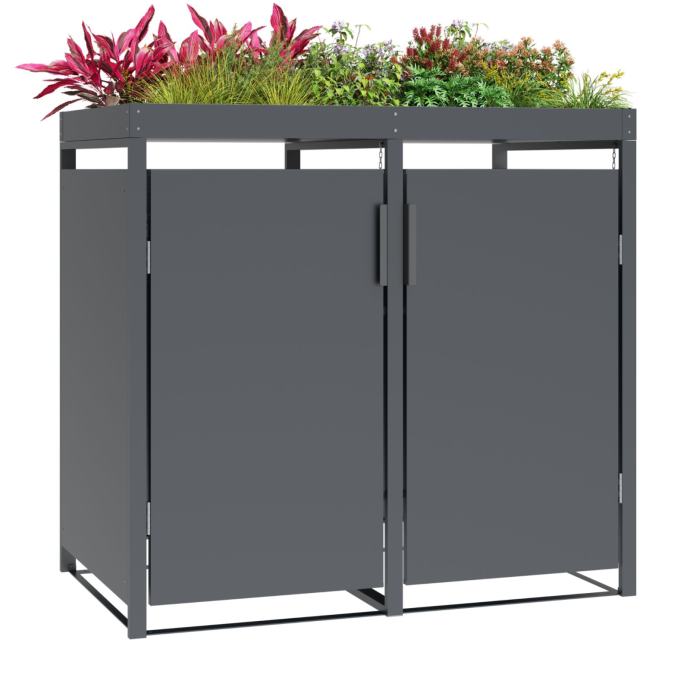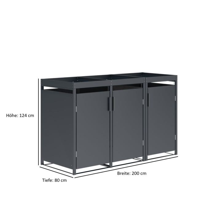 Funkcionalno spremište za smeće izrađena od čelika, antracit boje. Dimenzije: 200x80x124 cm. S priključkom za žardinjeru.