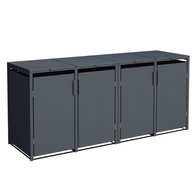Funkcionalna šupa za smeće s četiri odjeljka, izrađena od čelika, antracit boje.