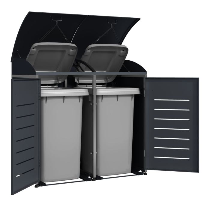 Ekskluzivno spremište za kante za smećez izrađena od nehrđajućeg čelika i čelika, antracit boje.