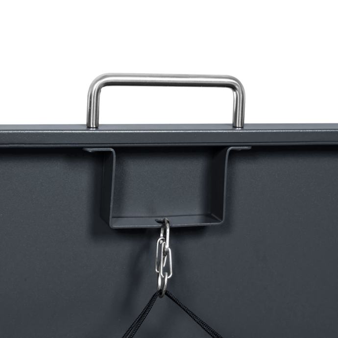 Kućica je izrađena od pocinčanog čelika (0,8 mm) i plastificirana u antracit boji (RAL 7016). Moderni uzorak na prednjim vratima daje kućici prepoznatljiv izgled.