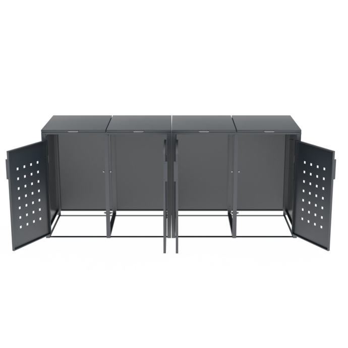 Funkcionalna kućica za kante za smeće Ts četiri odjeljka izrađena od čelika, antracit boje.
