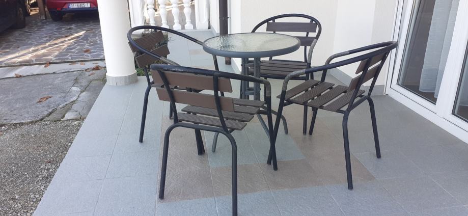 Prodajem stol i 4 stolice za terasu,jos u dobrom stanju,cijena 80 €,kontakt 098777821