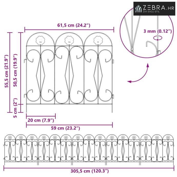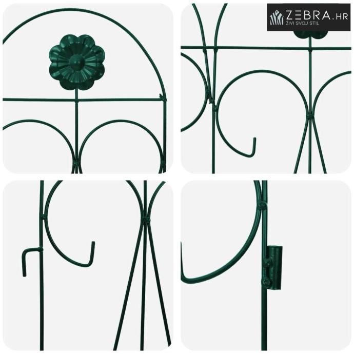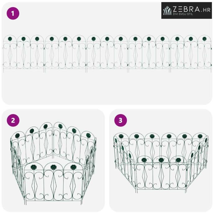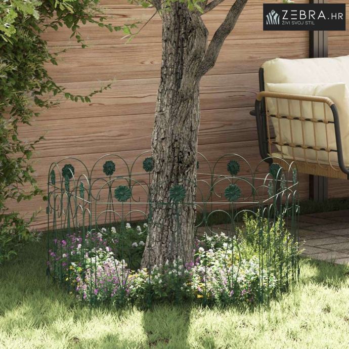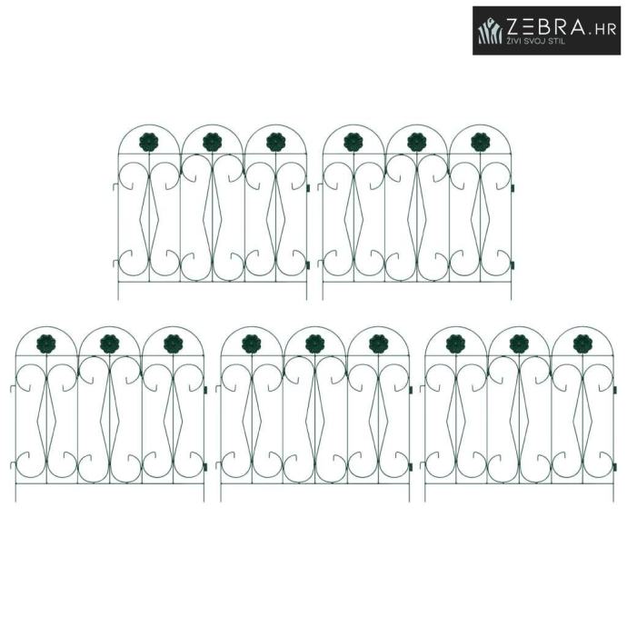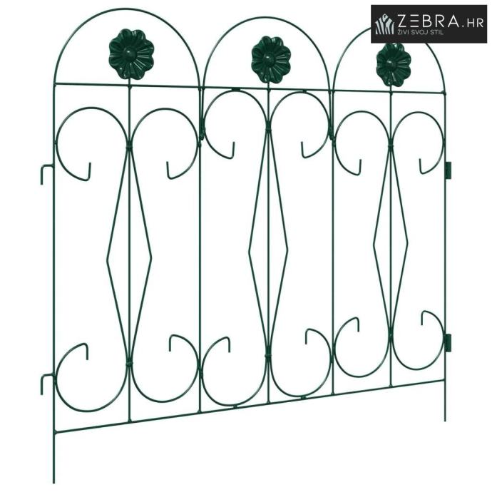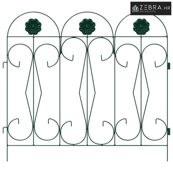 Čvrsta željezna konstrukcija Izrađena od trajnog željeza, ova ograda savršeno kombinira snagu i eleganciju. Željezni okvir pruža jasnu granicu, a istovremeno zadržava svojrustičan izgled koji se lako uklapa u razne stilove vrtova. Njen dizajn nudi stabilnost i dugotrajnost, otporna je na vremenske uvjete te osigurava pouzdano razdvajanje ili ograđivanje.