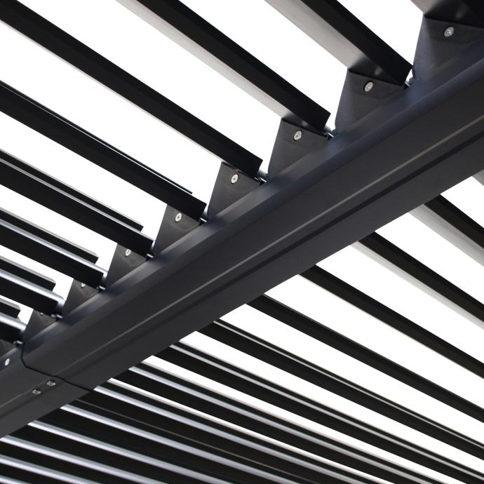 Krov je opremljen kontinuirano podesivim aluminijskim letvicama koje osiguravaju fleksibilne uvjete osvjetljenja.