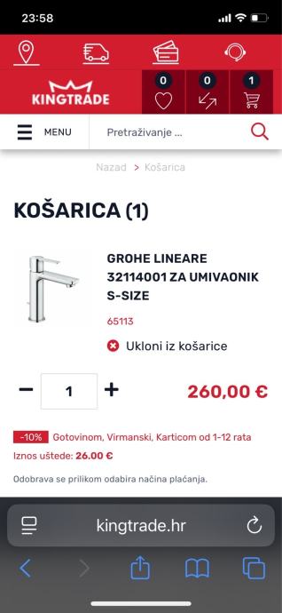 Prodajem slavinu za umivaonik marke “GROHE Lineare New”, funkcionira kao nova. Vidljivi tragovi korištenja. Novi perlator. Cijena 55 eura. Nova 5 puta skuplja. Trgovina “Kingtrade”.
