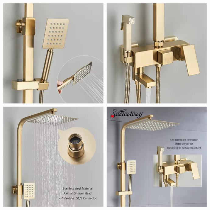 Kupaonski set za tuširanje, boja: brušeno zlato, 4 načina korištenja t