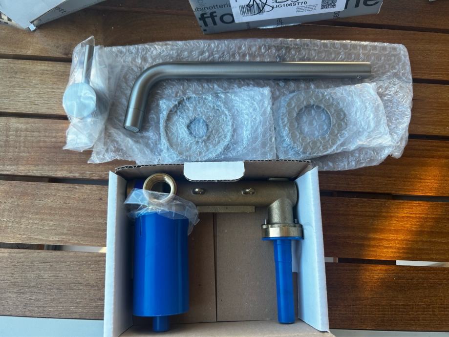 PAFFONI LIGHT ugradbena miješalica za umivaonik s izljevom L - 248 MM STEEL LOOKING (novo, nikad korišteno, u originalnom pakiranju)