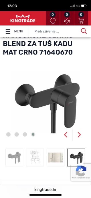 Slavina mješalica pipa špina baterija za tuš “Hansgrohe” serija “Vernis”, crna, nova, prodajem za 110 eura.
