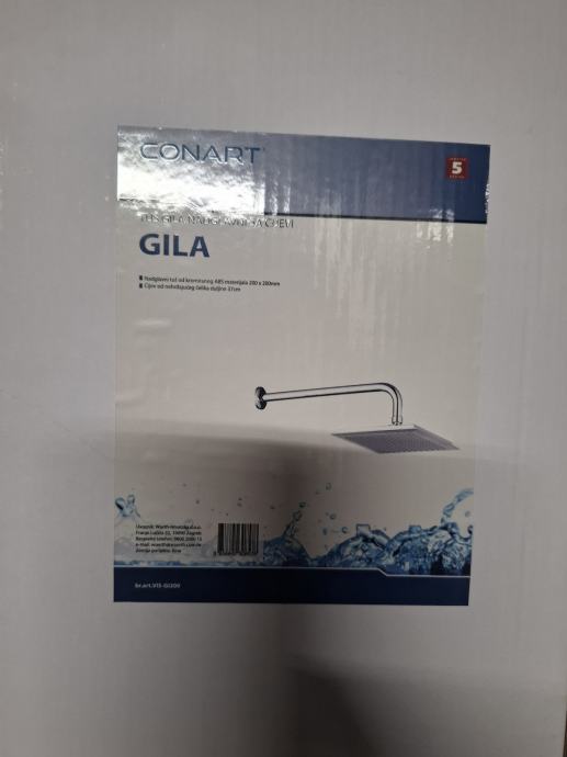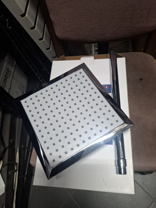 Prodaje se nova, nekorištena tuš ruža Gila, marke Conart 20x20 s cijevi/nosačem od nehrđajućeg čelika dužine 37cm.