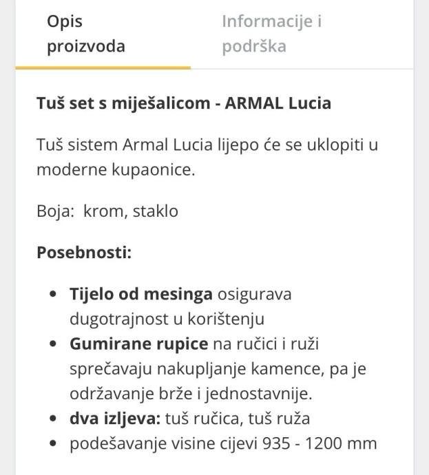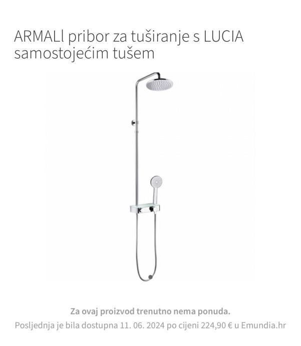 Prodajem novi Tuš set s mješalicom Armal-Lucia.