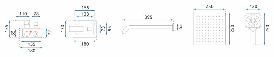 Veličina kišnog tuša: 25 x 25 cm
