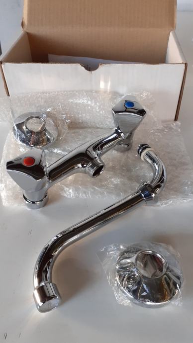 Zidna dvoručna slavina s dijelovima za montažu, nova i nekorištena. Cijena 250kn.