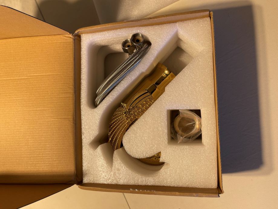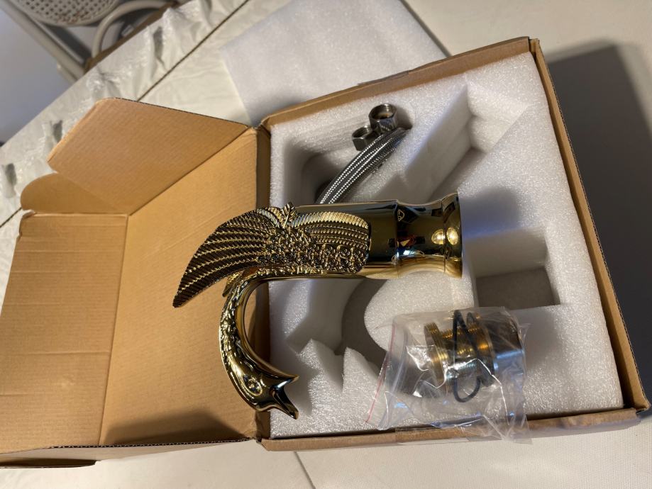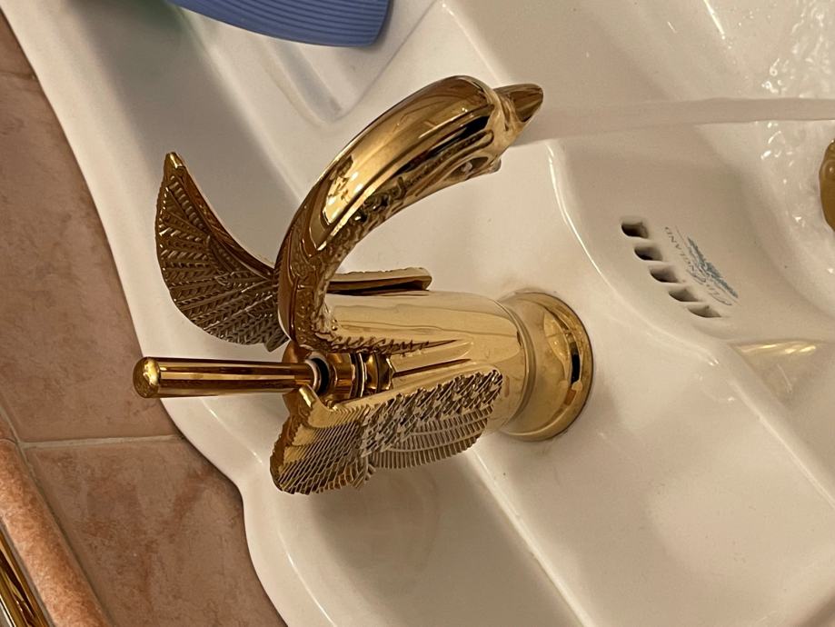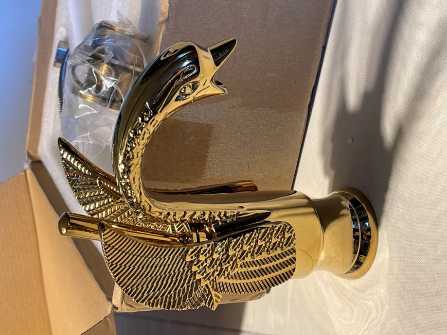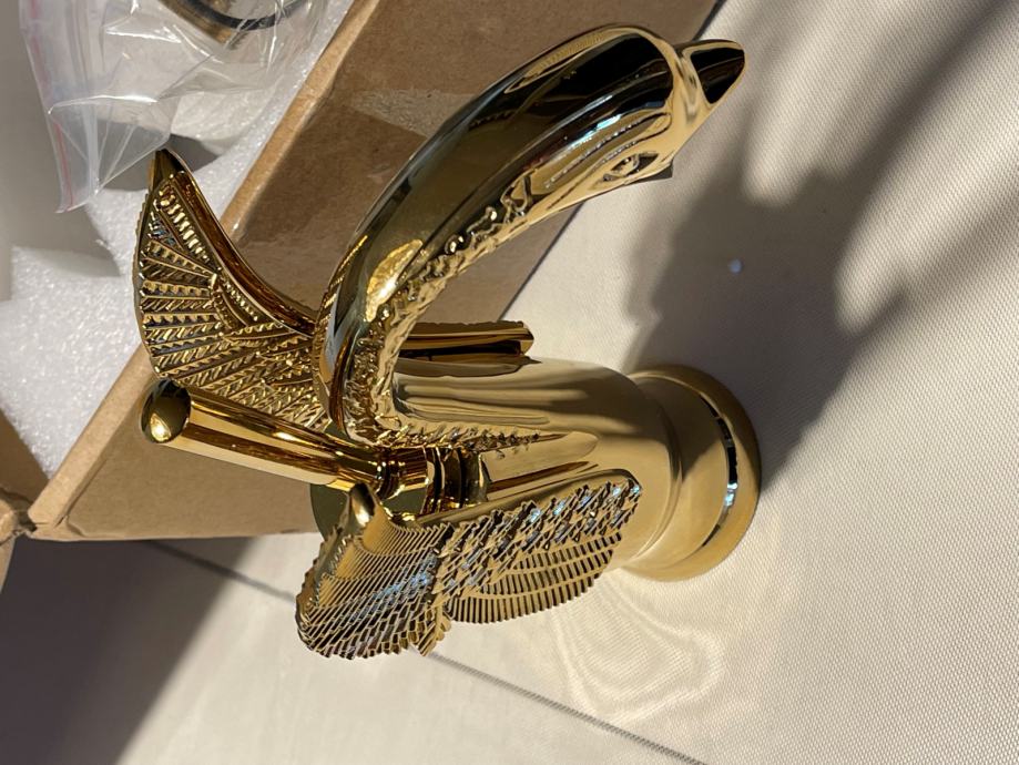 Slavina za umivaonik zlatne boje u obliku zmaja.