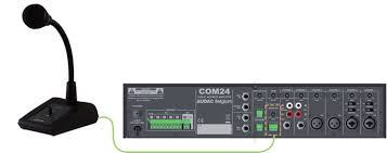 Paging microphone. Dynamic cardioid gooseneck microphone. Slim design. Die-cast metal base. 3 position switch. Switch contact and RC network for operation with chime modules