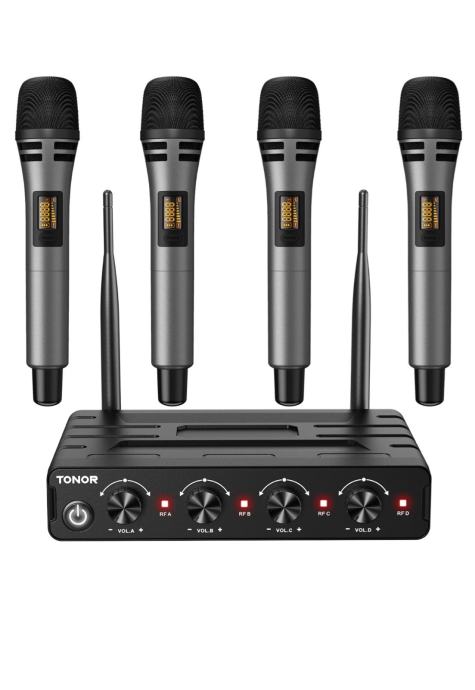 TONOR TW360 je 4-kanalni, dvostruki UHF bežični mikrofonski sustav s frekvencijskim odzivom od 40Hz-18kHz i radnim dometom do 60 metara (200 stopa). Ima stabilan UHF signal, funkcije isključivanja zvuka i kontrole glasnoće te se može koristiti sa zvučnicima, karaoke uređajima i PA sustavima.