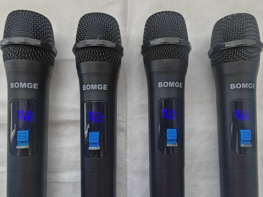 Komplet se sastoji od baze, četiri ručna bežična mikrofona, inst. kabla i 8 Eneloop Pro punjivih baterija.